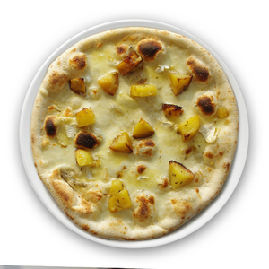 pomodoro, mozzarella, radicchio, melanzane grigliate, zucchine grigliate, patate al forno, funghi freschi, pomodorini, grana (verdure distribuite a spicchi)