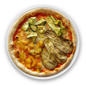 pomodoro, mozzarella, melanzane, zucchine, peperoni e grana